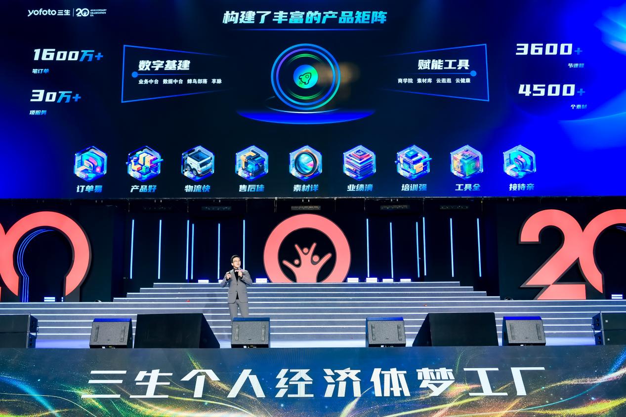三生(中国)首席数字产品官叶秋介绍:“截至目前,三生数智健康产品工具累计服务会员已超过800万,累计服务订单超1600万条,累计服务项目超30万,为个人经济体展业提供了强有力的技术支撑。20年来,三生始终紧跟时代趋势,坚定不移地在数智化赋能赛道持续深耕细作,为消费者做好技术服务,不断创新数智工具和服务赋能,助力个人经济体迅速发展。”