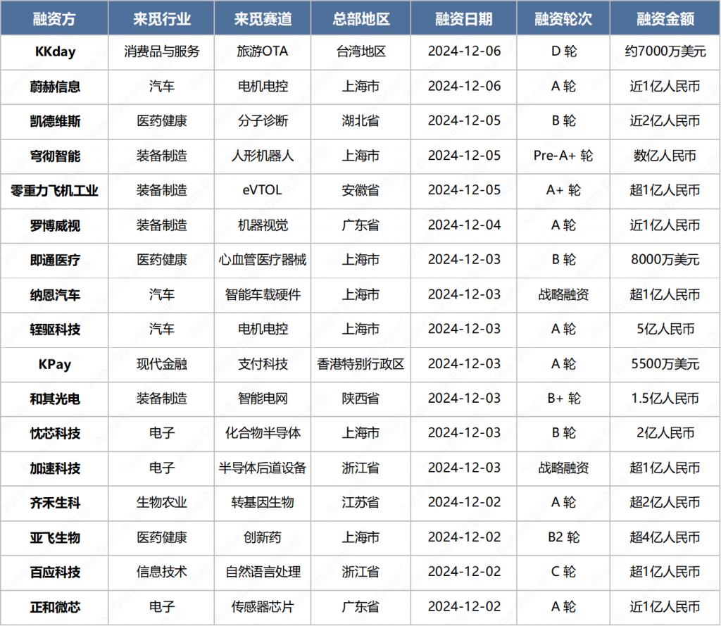 3. 机器人:近日,穹彻智能宣布完成数亿元 Pre-A+ 轮融资,此次融资由红杉中国领投,老股东 Prosperity7 Ventures、小苗朗程及璞跃中国(Plug and Play China)继续跟投。本轮融资募集资金将主要用于加速穹彻智能产品的开发、人才招募、推动商业化和生态合作。穹彻智能专注于具身智能大模型和相关基础设施的研发,研究机器人种类涵盖人形机器人、水下机器人等。据来觅数据显示,穹彻智能成立仅 1 年时间,至今已获得 3 轮融资,累计融资金额超 2 亿元。
