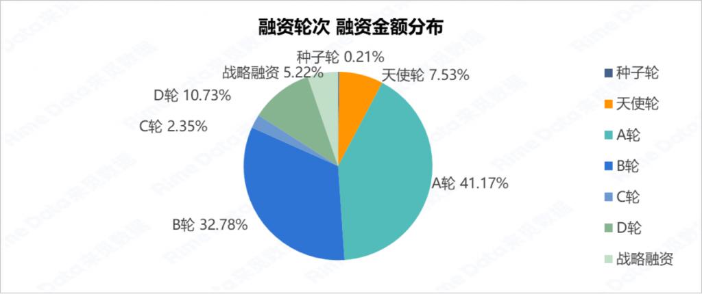 从融资轮次的分布来看,本周天使轮和 A 轮最为活跃,合计达 61 起;战略融资排名第三,为 11 起,较上周增加 1 起;本周早期融资(A 轮及以前)融资事件数合计占比 72.73%,较上周进一步提升。融资金额方面,本周 A 轮融资占比最高,达 41.17%;其次是 B 轮融资,融资金额占比达 32.78%。整体而言,本周融资轮次金额方面的分布较上周有所前移。